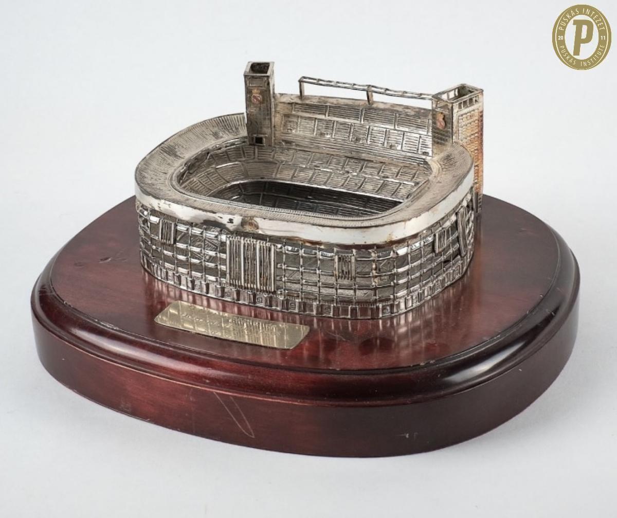 A Real Madrid ajándéka Puskás Ferenc 70. születésnapjára, amely a Santiago Bernabéu stadiont ábrázolja.