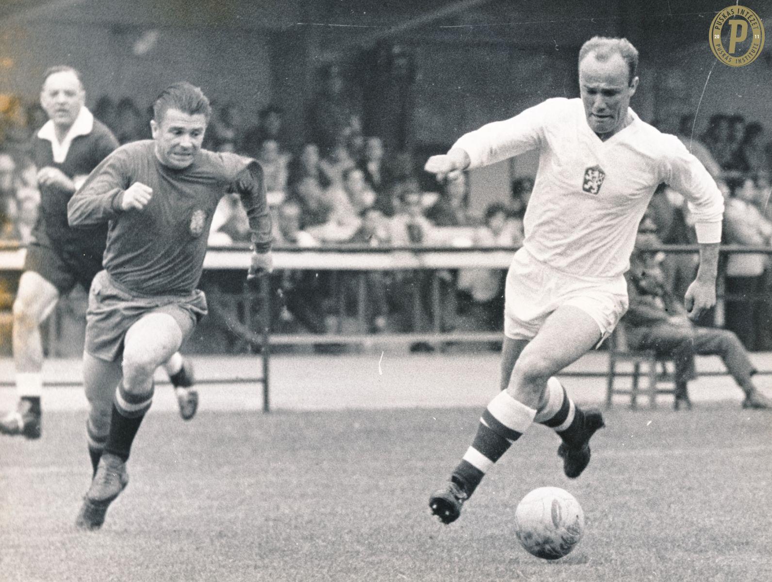 Puskás Ferenc a Csehszlovákia – Spanyolország 1962-es világbajnoki mérkőzésen. (Fotó: Puskás Intézet)