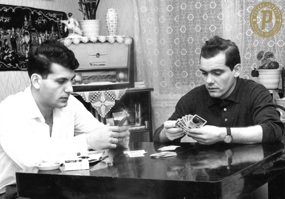 Farkas János és Berendy Pál kártyáznak (fotó: Puskás Intézet)