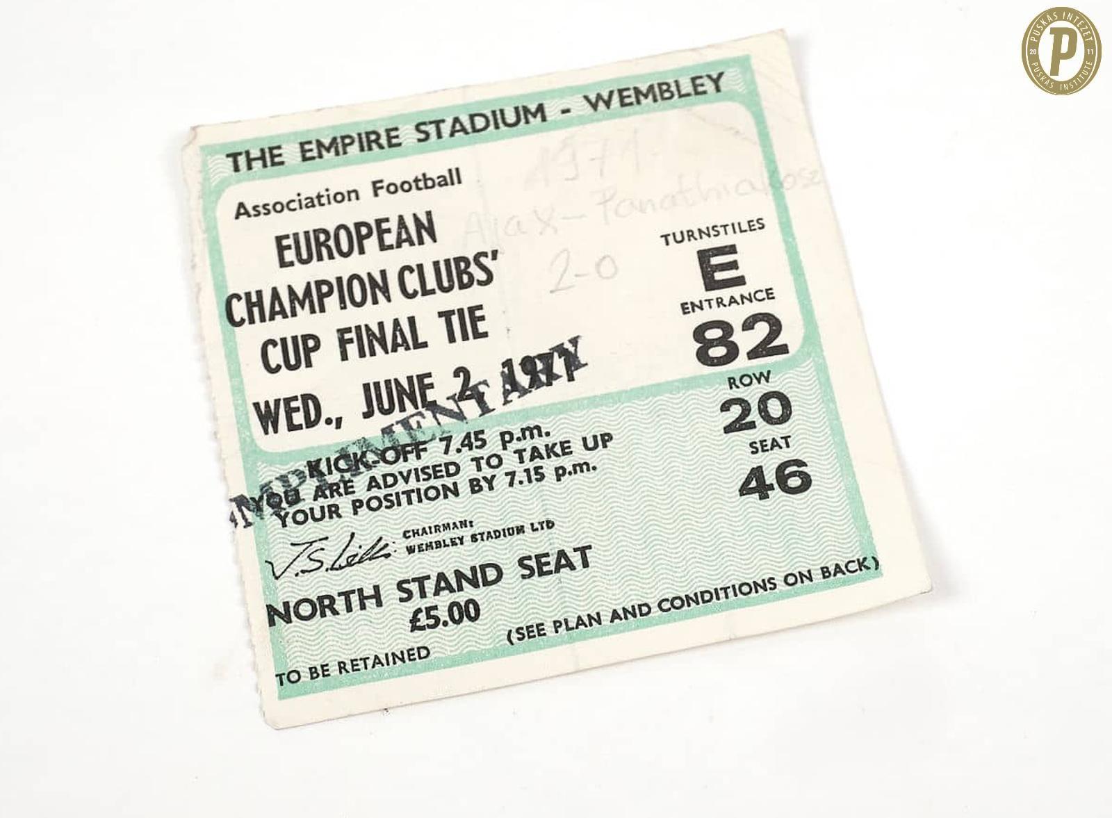 Belépőjegy az 1971-es BEK-döntő (Ajax – Panathinaikosz) mérkőzésre. (Fotó: Puskás Intézet)