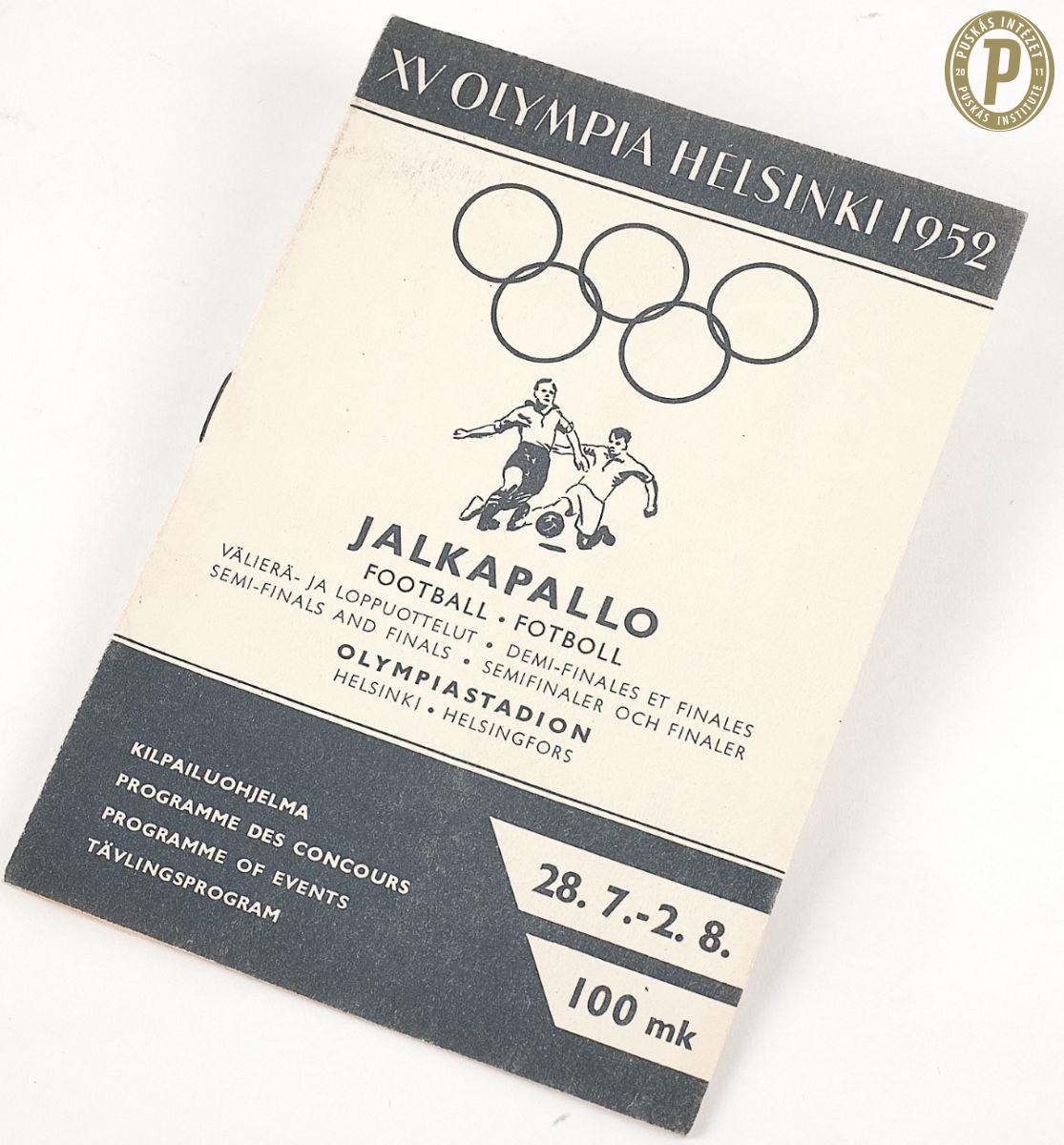 Az 1952-es helsinki olimpia labdarúgótornájának a programfüzete (fotó: Puskás Intézet/Puskás-hagyaték)
