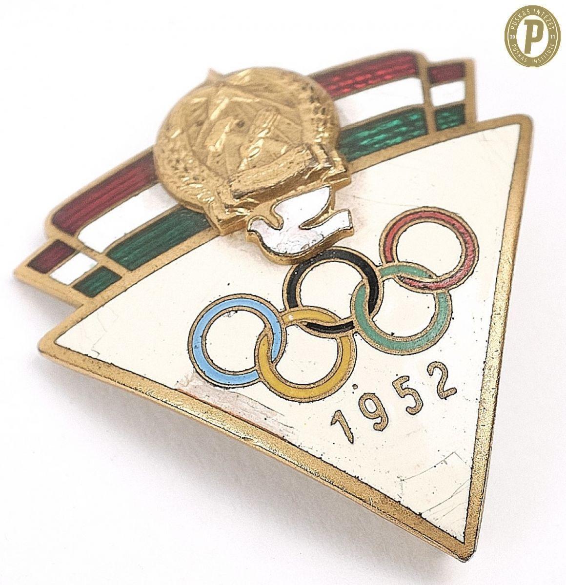 Buzánszky Jenő 1952-es helsinki olimpián viselt kitűzője (fotó: Puskás Intézet/Buzánszky-hagyaték)