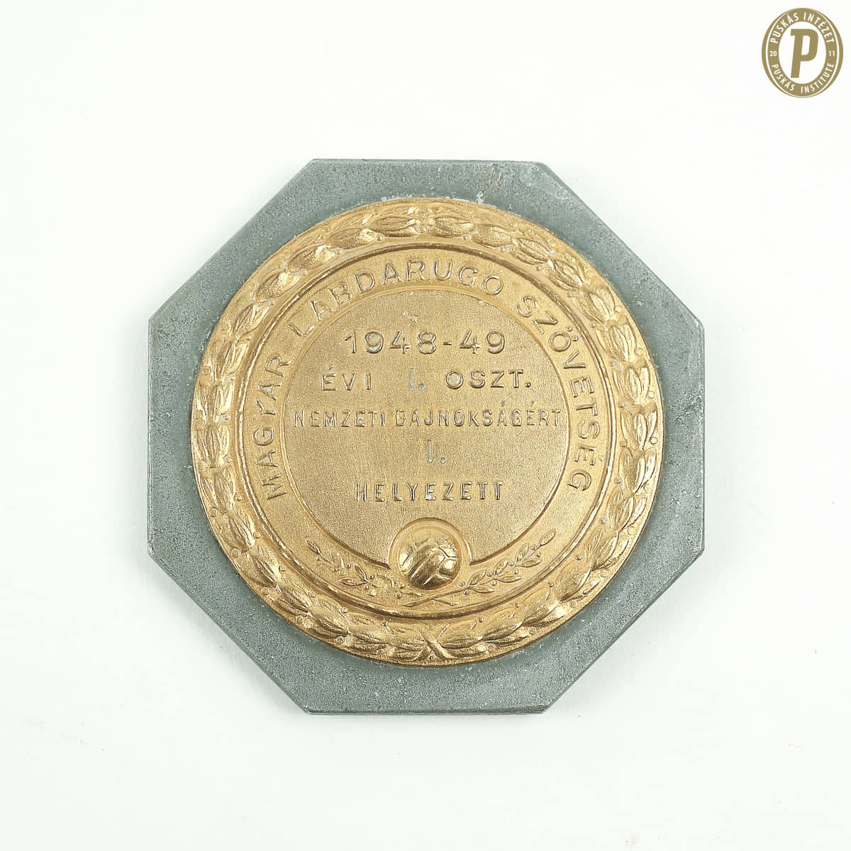 Deák Bamba bajnoki aranyérme az 1948–1949 szezonból, amelyet az FTC játékosaként nyert (Puskás Intézet)