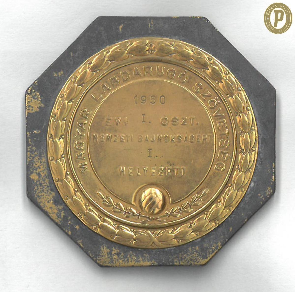Bányai Nándor 1950-es bajnoki aranyérme. (Fotó: Puskás Intézet)