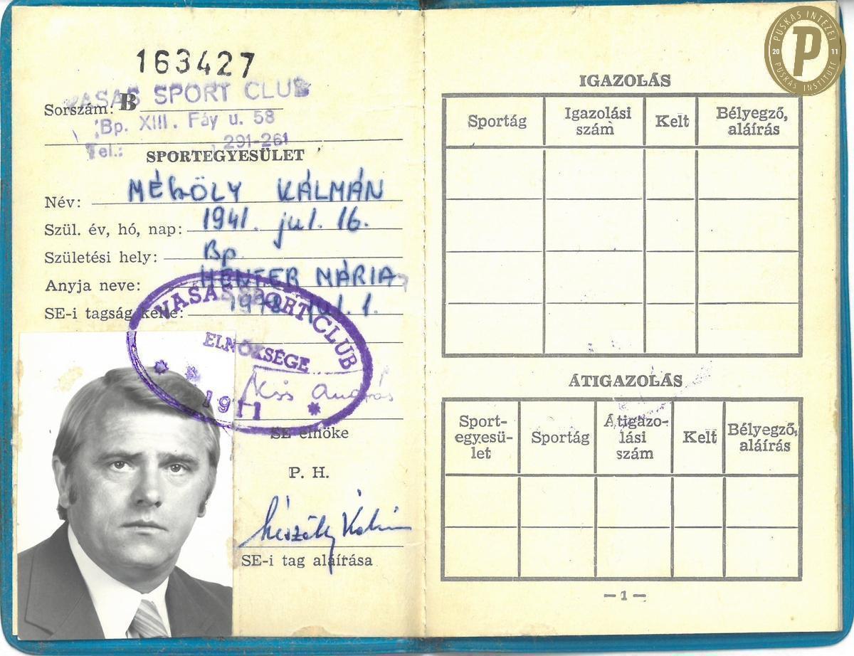 Mészöly Kálmán Vasas SC tagsági igazolványa (fotó: Puskás Intézet)