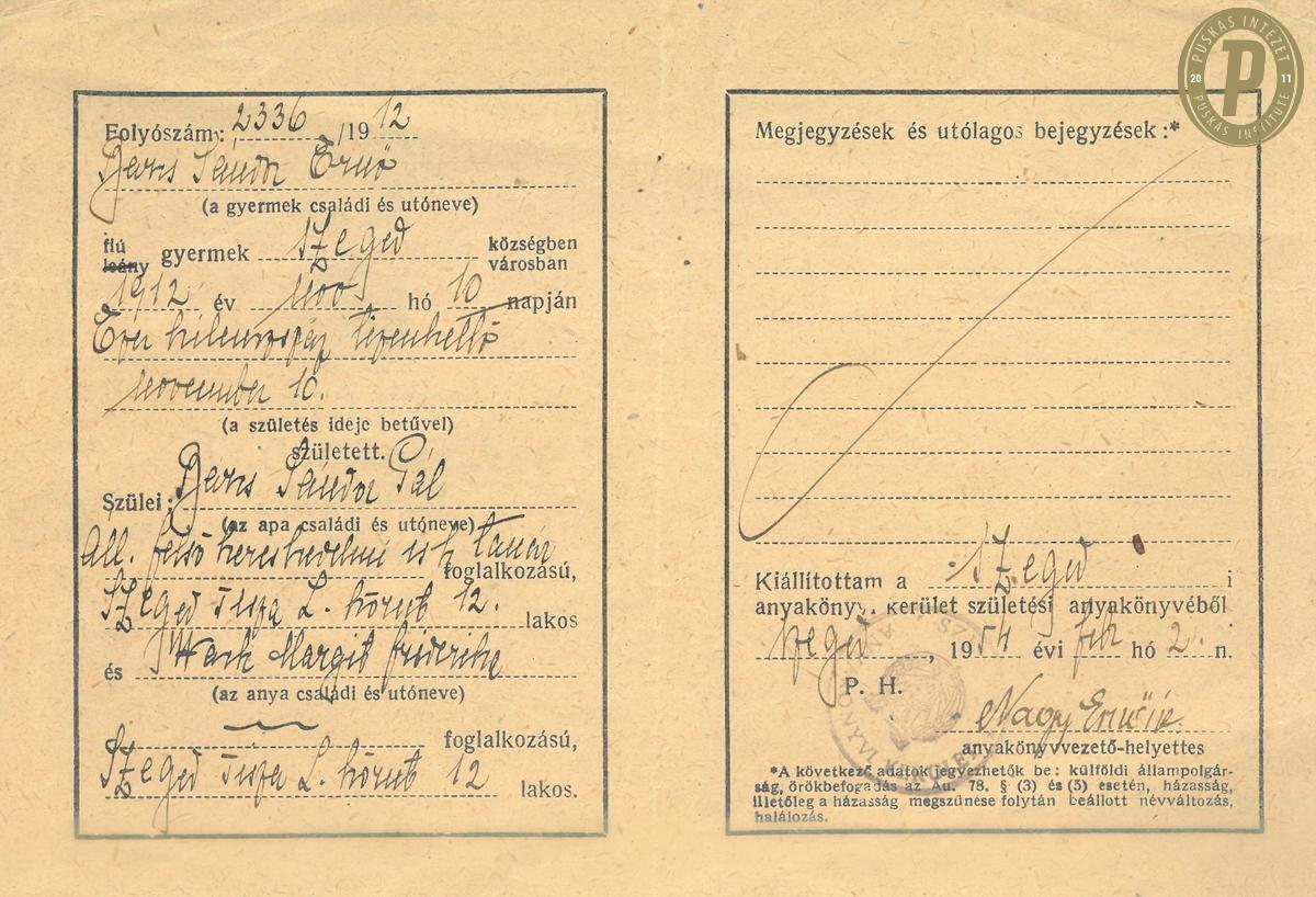 Bartsch Sándor születési anyakönyvi kivonata. (Fotók: Puskás Intézet)