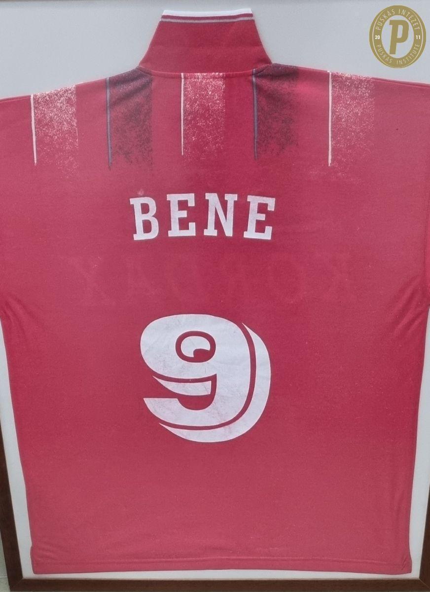 Bene Ferenc 1994-ben a Magyarország–Brazília öregfiúk gálamérkőzésen viselt meze. (Fotó: Puskás Intézet/Bene-hagyaték)