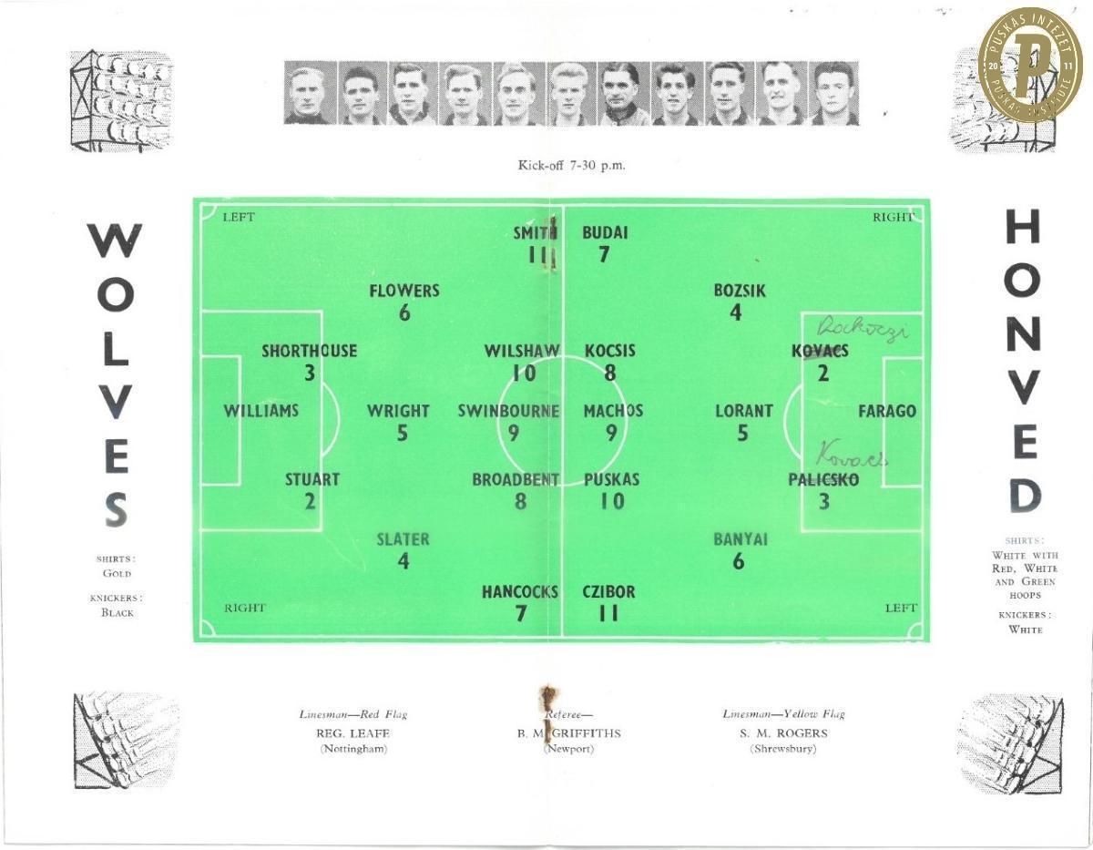 Az 1954-es Wolverhampton Wanderers – Bp. Honvéd mérkőzés programfüzete. (Fotók: Puskás Intézet)