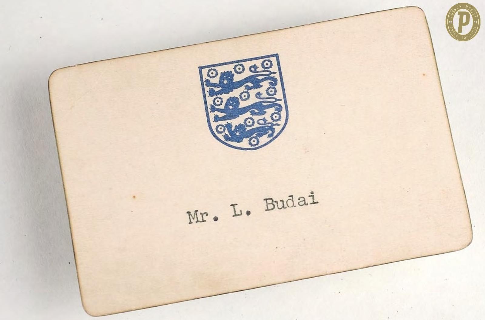 Budai II László ültetőkártyája az 1953. november 25-i Anglia–Magyarország (3–6) mérkőzés utáni vacsoráról (fotó: Puskás Intézet/Budai II-hagyaték)