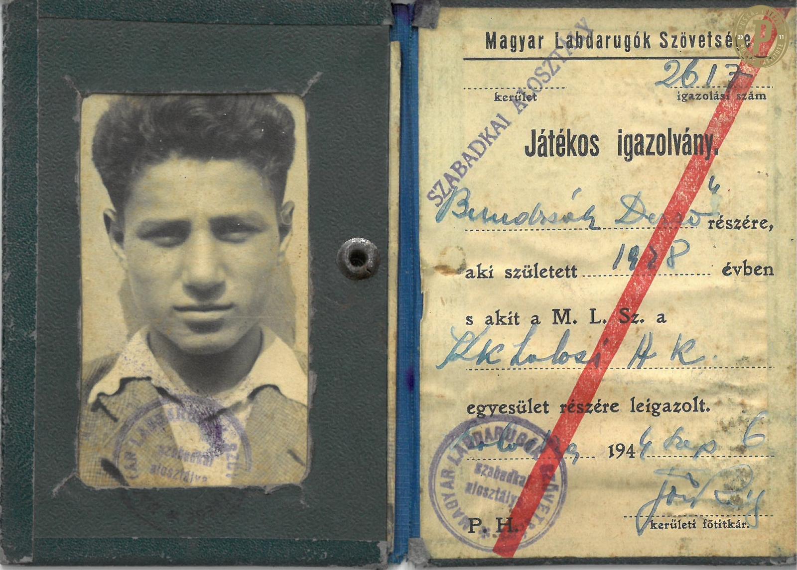 Bundzsák Dezső fényképes labdarúgó igazolványa. (Fotó: Puskás Intézet)