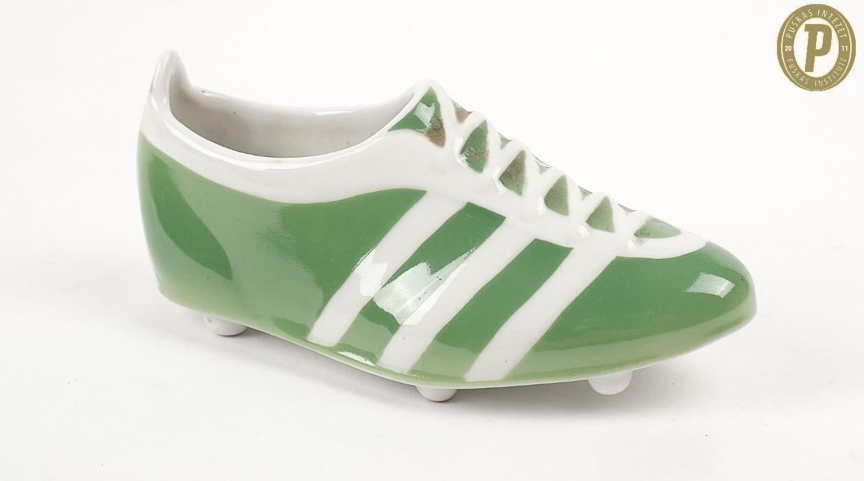 Csanádi Árpád FTC-től kapott zöld-fehér porceláncipője. (Fotó: Puskás Intézet/Csanádi Árpád-hagyaték)