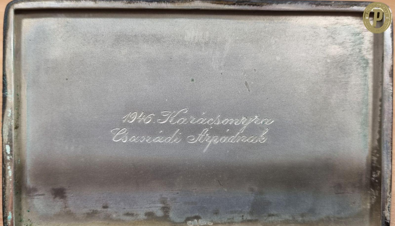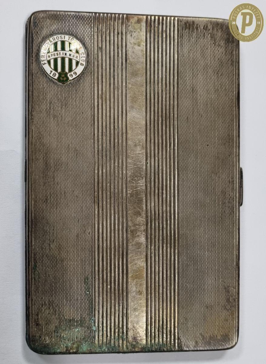 Csanádi Árpád a Ferencvárostól 1946 karácsonyára ajándékba kapott cigarettatárcája. (Fotó: Puskás Intézet/Csanádi Árpád-hagyaték)