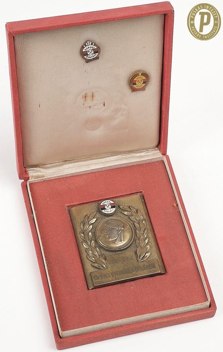 Buzánszky Jenő emlékplakettje, amit a Dorogi Bányász megalakulásának 50. évfordulójára kapott (fotó: Puskás Intézet/Buzánszky-hagyaték)