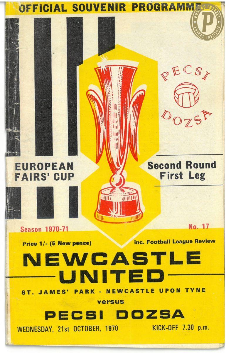 Az 1970/71-es Vásárvárosok Kupája, 2. forduló, első mérkőzés: Newcastle United – Pécsi Dózsa SC műsorfüzet. (Fotó: Puskás Intézet)