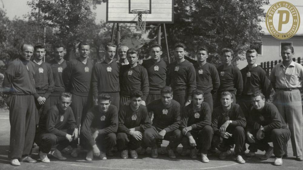 Várhidi Pál (felső sorban balról a nyolcadik) az 1954-es Nyári Főiskolai Világbajnokságon résztvevő magyar csapatban. (Fotó: Puskás Intézet)