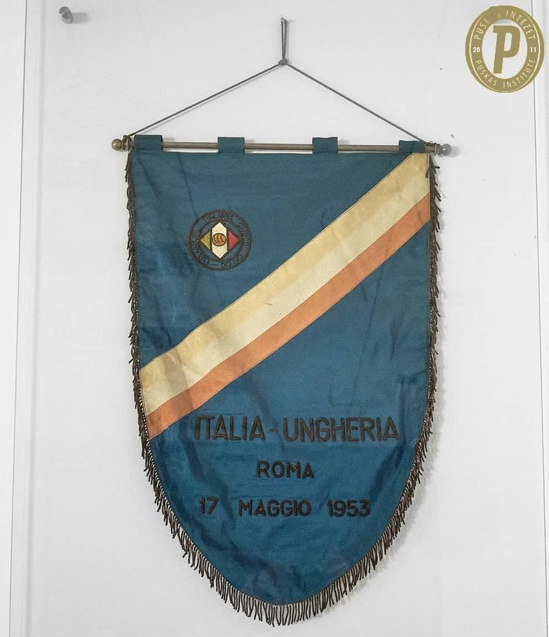 Az olasz válogatott csapatzászlója az 1953-as mérkőzésről (Fotó: Puskás Intézet)