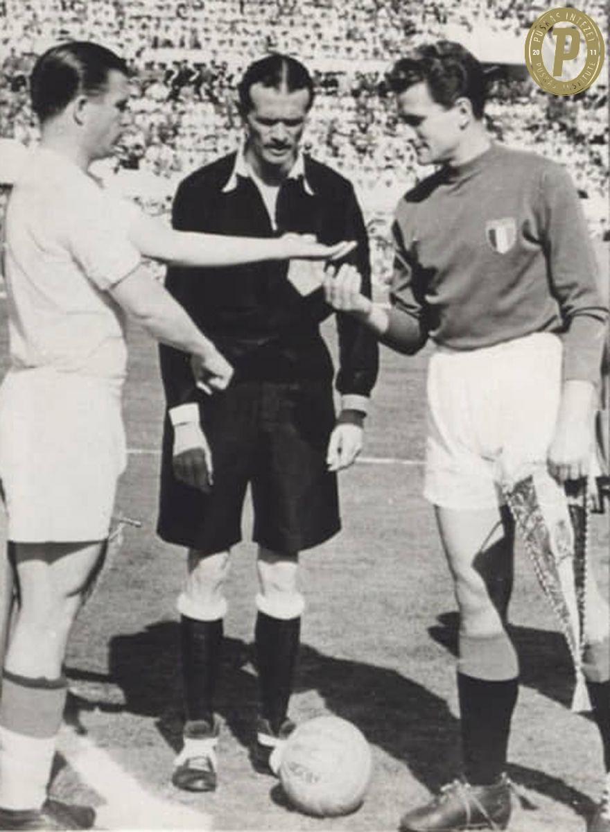 Puskás Ferenc és Giampiero Boniperti az 1953-as Olaszország – Magyarország mérkőzésen. (Fotó: Puskás Intézet)