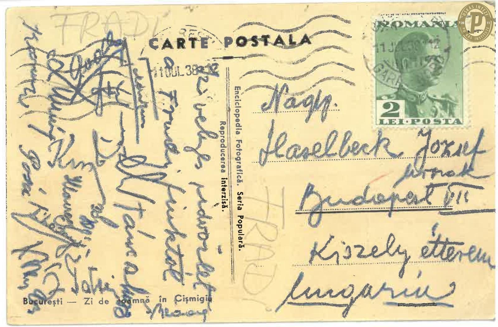 Az FTC játékosai által küldött képeslap Romániából, 1938. (fotók: Puskás Intézet)
