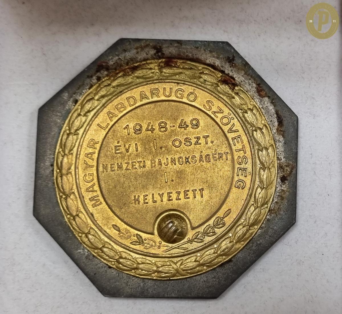 Kispéter Mihály 1948–1949-es bajnoki aranyérme (fotók: Puskás Intézet)