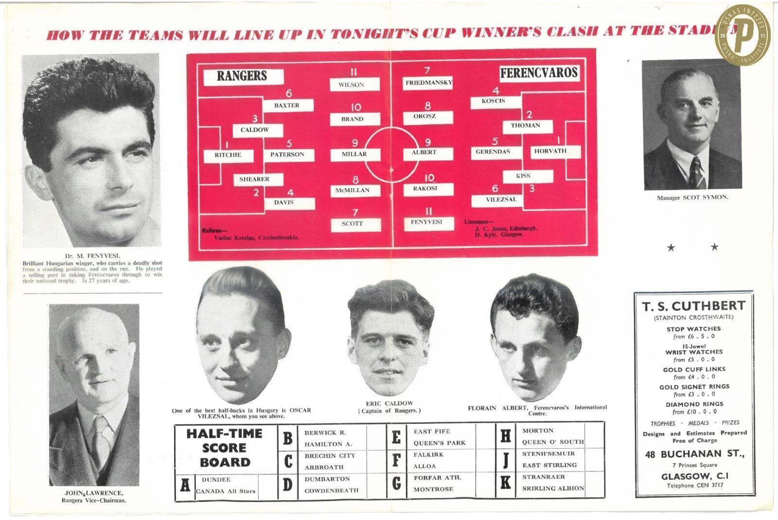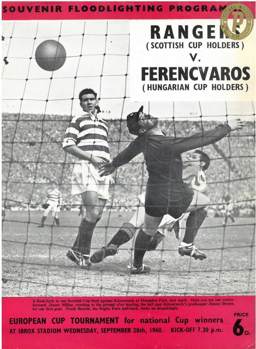 A Ferencváros első nemzetközi kupameccsének programfüzete (a Közép-európai Kupát figyelmen kívül hagyva). 1960. szeptember 28., KEK, 1. forduló, 1. mérkőzés, Rangers–Ferencvárosi TC 4–2 (0–1). (Fotók: Puskás Intézet)