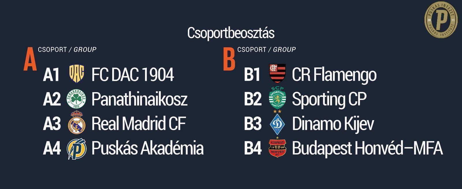 A sajtótájékoztatón a nyolc csapatot két négyfős csoportba osztották. A tornán 30 perces félidőket játszanak majd az együttesek. A bronzcsatát és a finálét a Pancho Arénában rendezik pünkösdhétfőn. Ezt a két mérkőzést az M4 Sport élőben közvetíti. A többi találkozót online követhetik majd figyelemmel az érdeklődők a Puskás Akadémia YouTube-csatornáján.