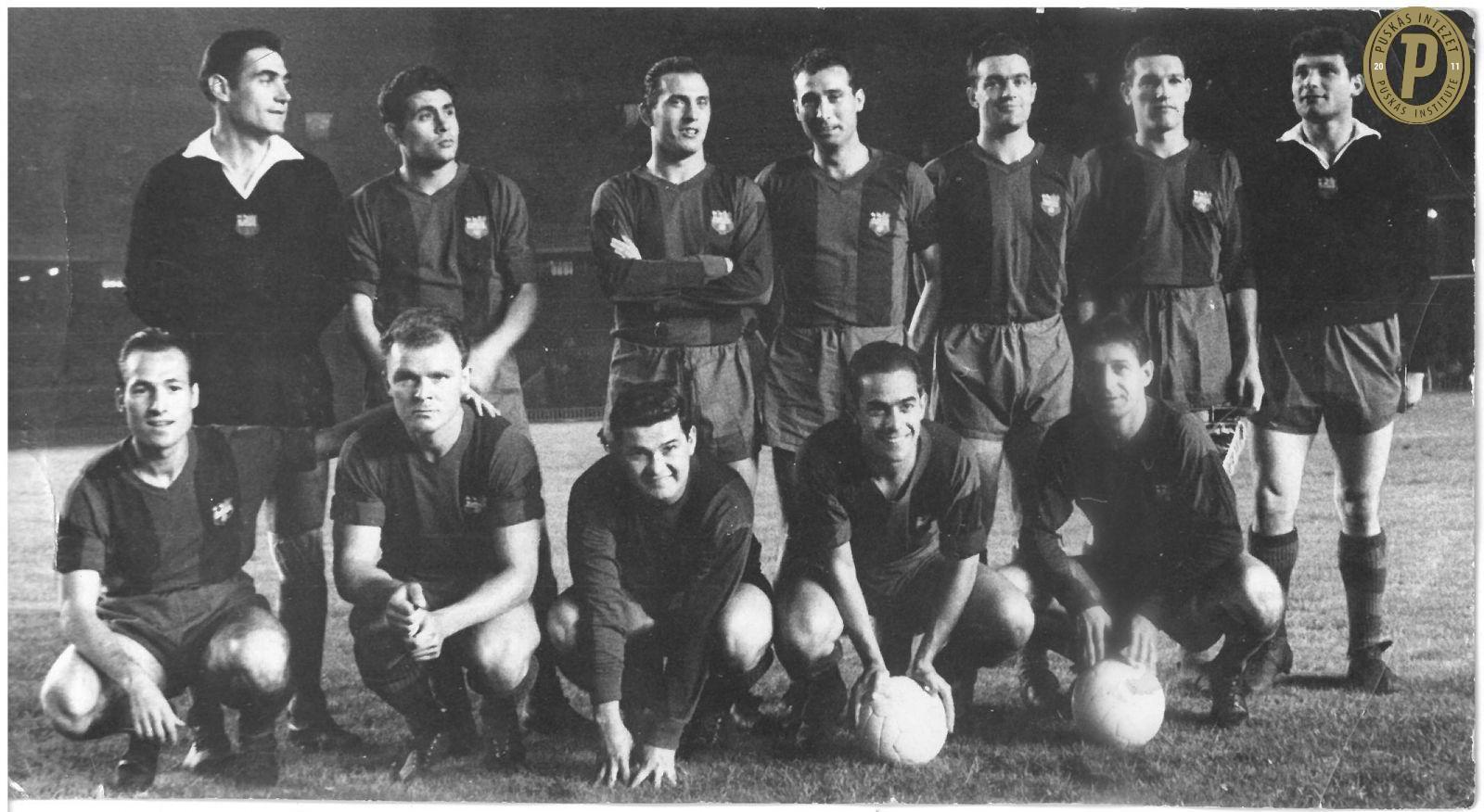 Az FC Barcelona csapata, az alsó sorban: Kubala László (balról a második), Luis Suárez (balról a negyedik) és Czibor Zoltán (balról az ötödik). (Fotó: Puskás Intézet/Kubala-hagyaték)
