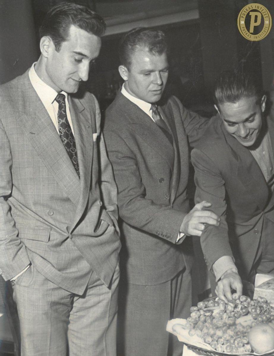 Kubala László (középen) és Luis Suárez (jobbra). (Fotó: Puskás Intézet/Kubala-hagyaték)