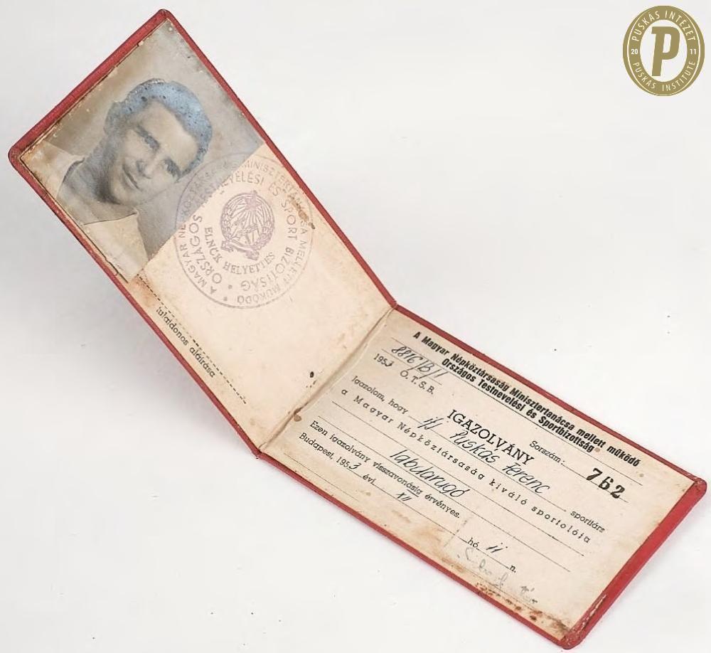 Puskás Ferenc 1953-as kiváló sportolói igazolványa. (Fotó: Puskás Intézet/Puskás-hagyaték)