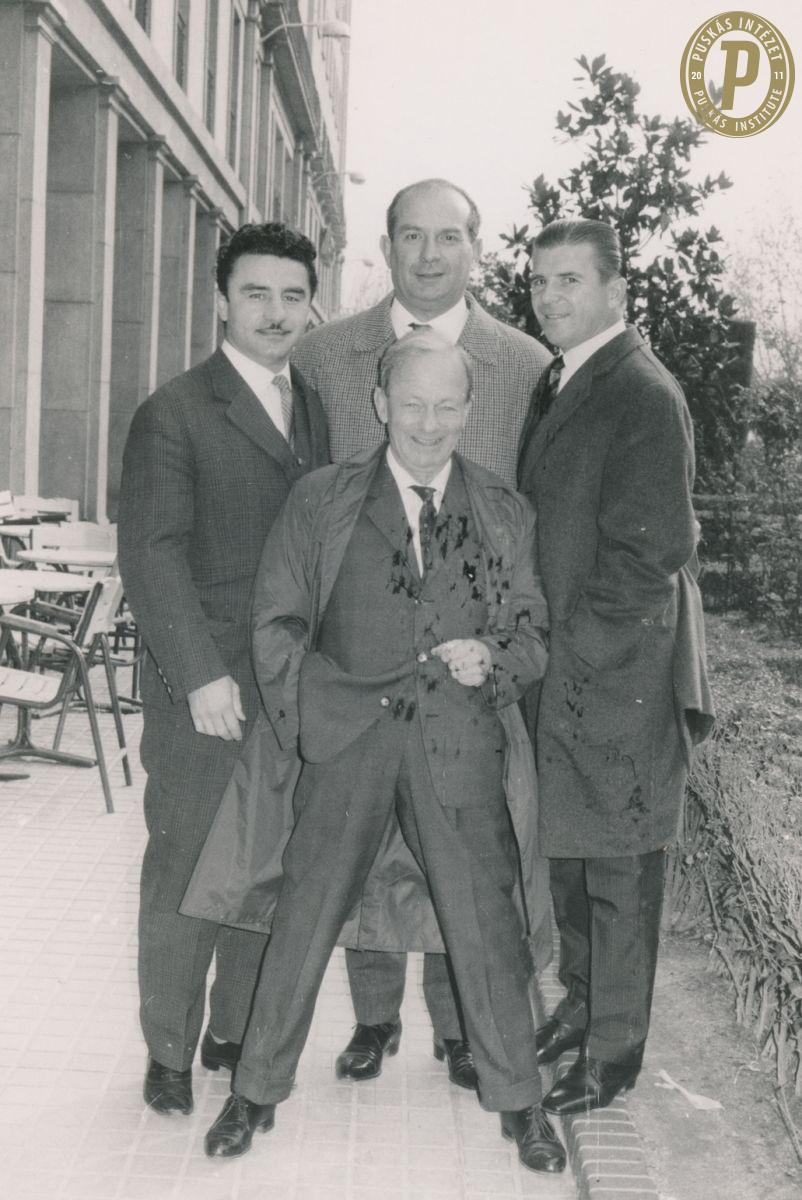 Papp László (balra), Östreicher Emil (hátul, Adler Zsigmond (elől), Puskás Ferenc (jobbra). (Fotó: Puskás Intézet)