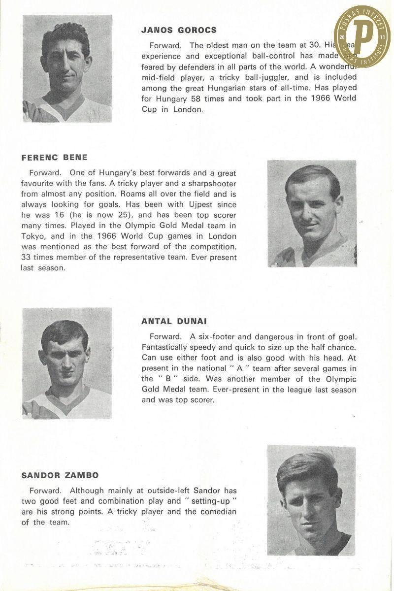 Az 1968–1969-es Vásárvárosok Kupája-döntő, első mérkőzés, Newcastle United FC – Újpesti Dózsa SC (3–0) műsorfüzete. (Fotók: Puskás Intézet)