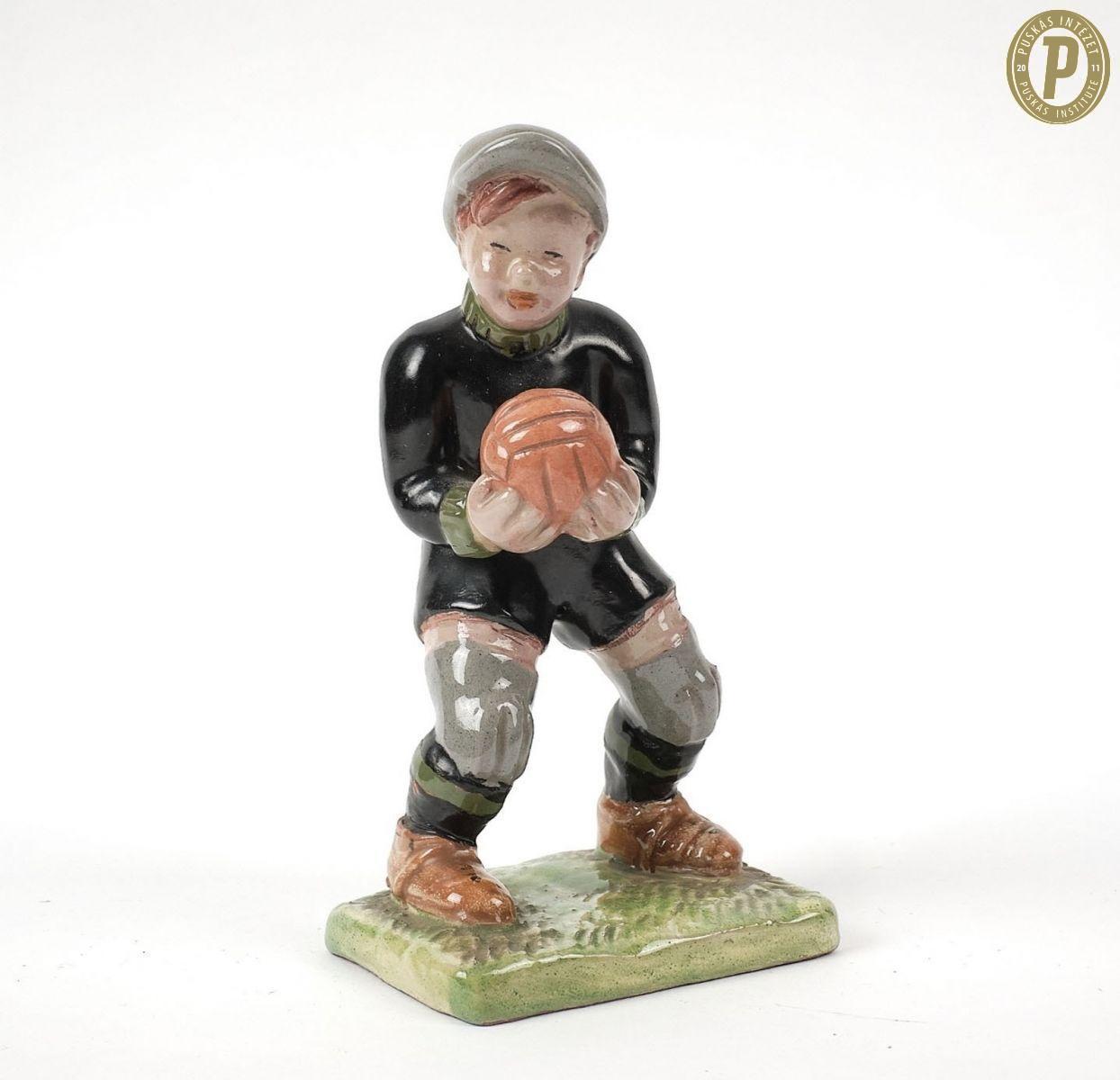 Grosics Gyula porcelánszobra, amelyet a visszavonulására kapott a Tatabányától. (Fotó: Puskás Intézet/Grosics-hagyaték)