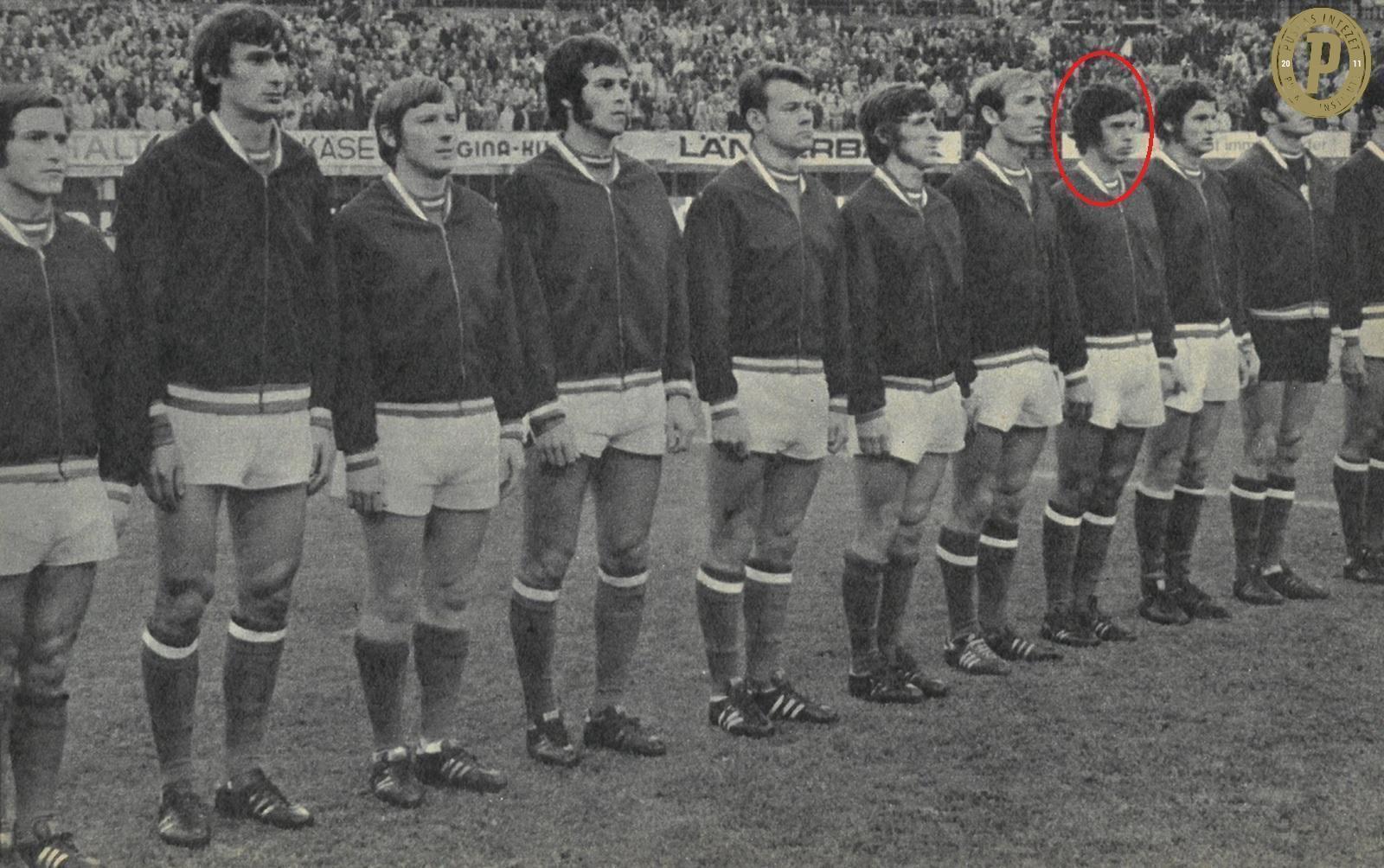 Juhász Péter a magyar válogatottban 1972. október 15-én Bécsben, az Ausztria – Magyaroszág (2–2) világbajnoki selejtezőn. (Fotó: Puskás Intézet)