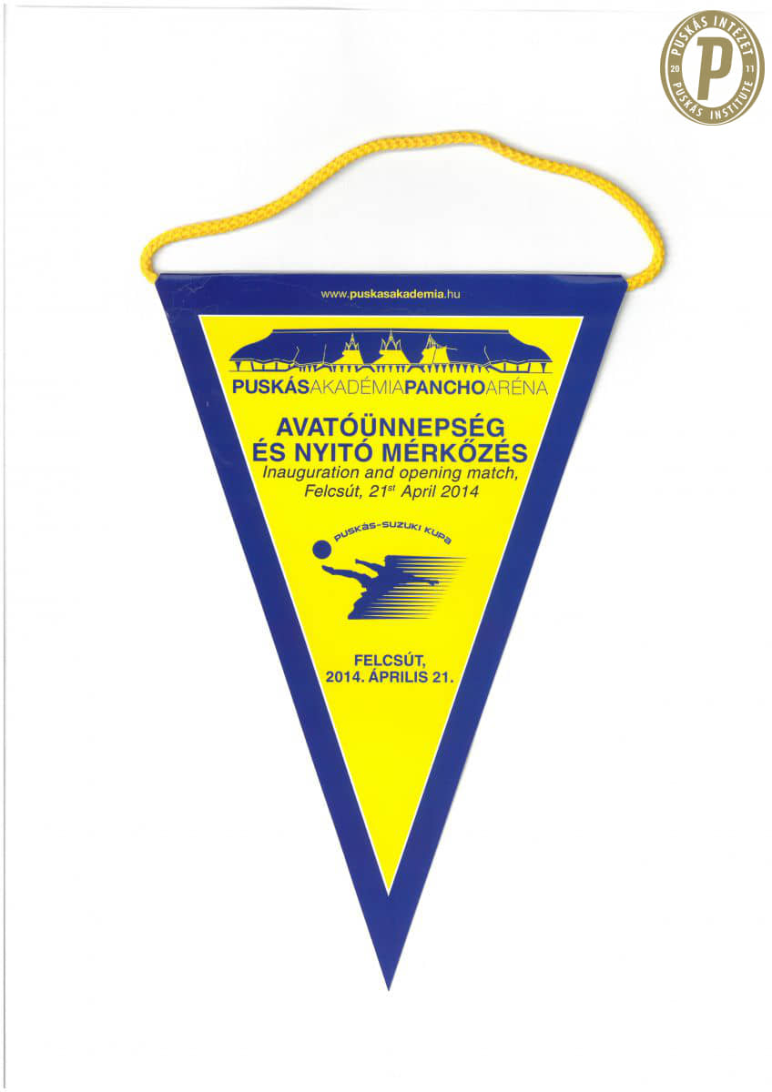 Emlékzászló a Pancho Aréna megnyitójáról (Puskás Intézet)