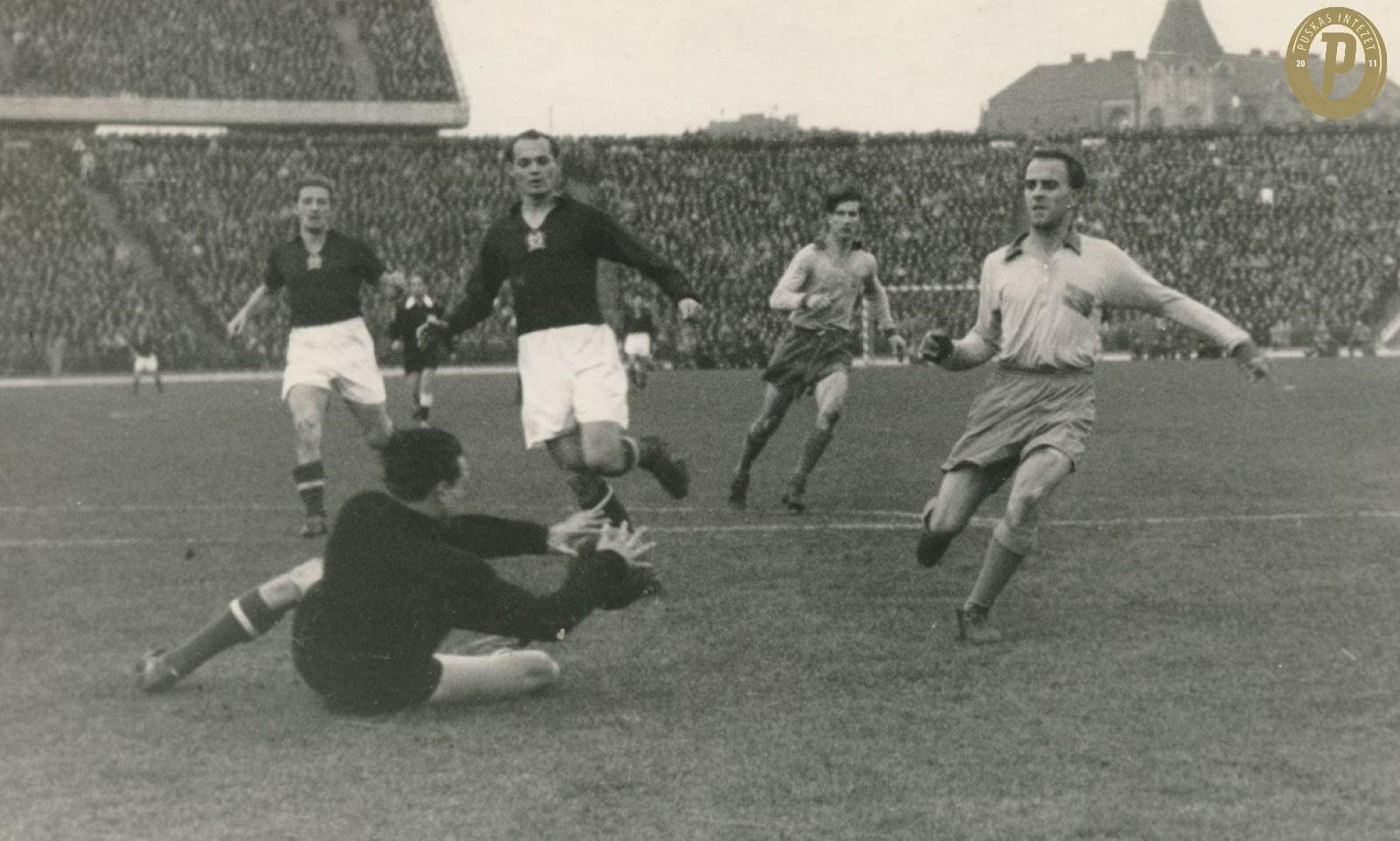 Meccsjelenet az 1953. november 15-i Magyarország – Svédország barátságos mérkőzésről. (Fotó: Puskás Intézet)