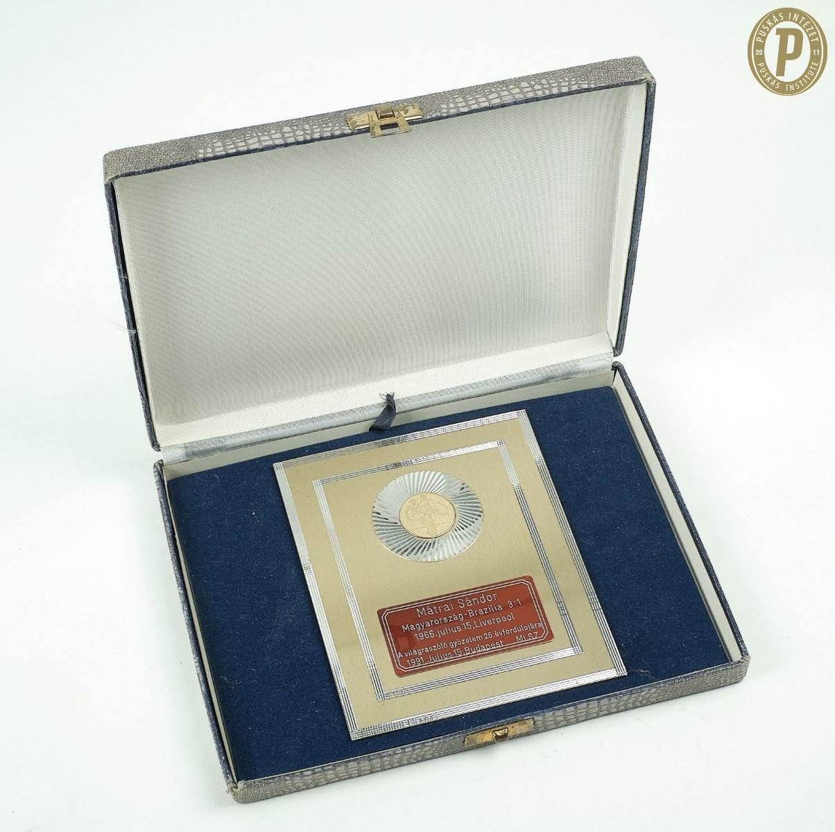 Mátrai Sándor emlékplakettje, amelyet az 1966-os brazilok elleni 3–1-es győzelem 25. évfordulójára kapott.