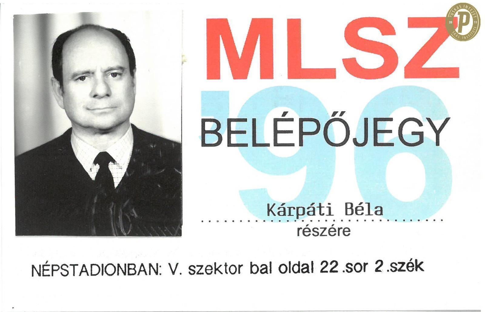 Kárpáti Béla belépője a Népstadionban. (Fotó: Puskás Intézet)