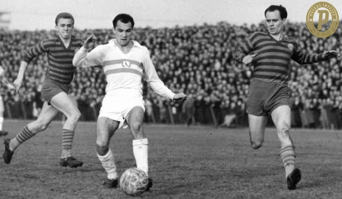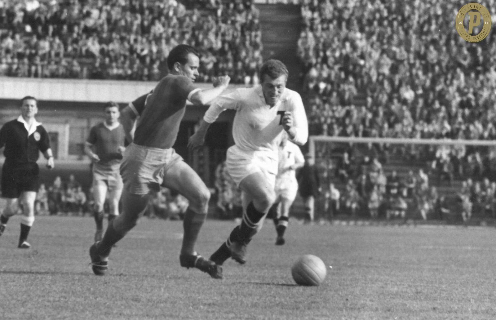Kárpáti Béla (balra) küzd a labdáért. (Fotó: Puskás Intézet)