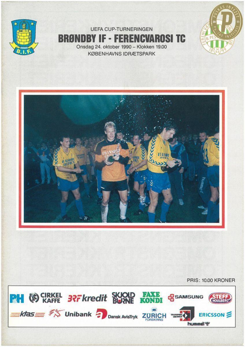 Az 1990-es Bröndy IF – Ferencvárosi TC UEFA-kupa-mérkőzés programfüzete. (Fotó: Puskás Intézet)