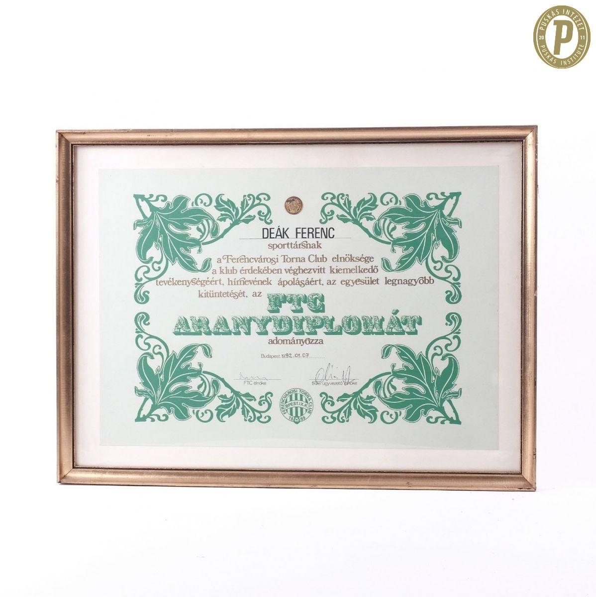 Deák Bamba ferencvárosi diplomája. (Fotó: Puskás Intézet/Deák-hagyaték)