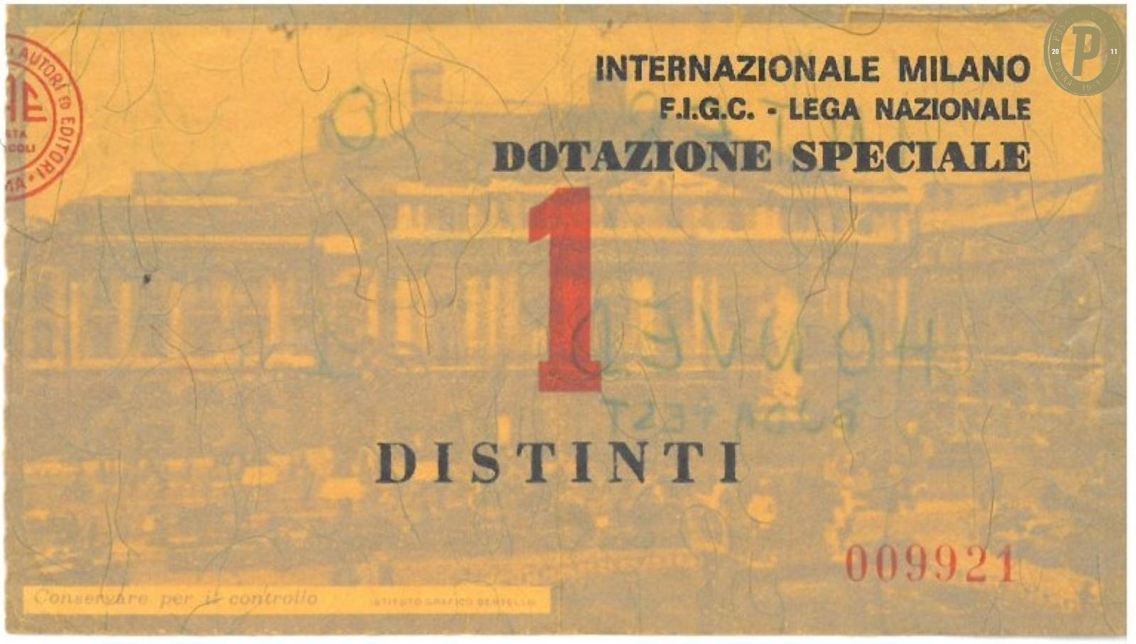 Belépőjegy az 1976. szeptember 15-i UEFA-kupa, 1. forduló: Inter–Bp. Honvéd (0–1) mérkőzésre (fotó:Puskás Intézet)