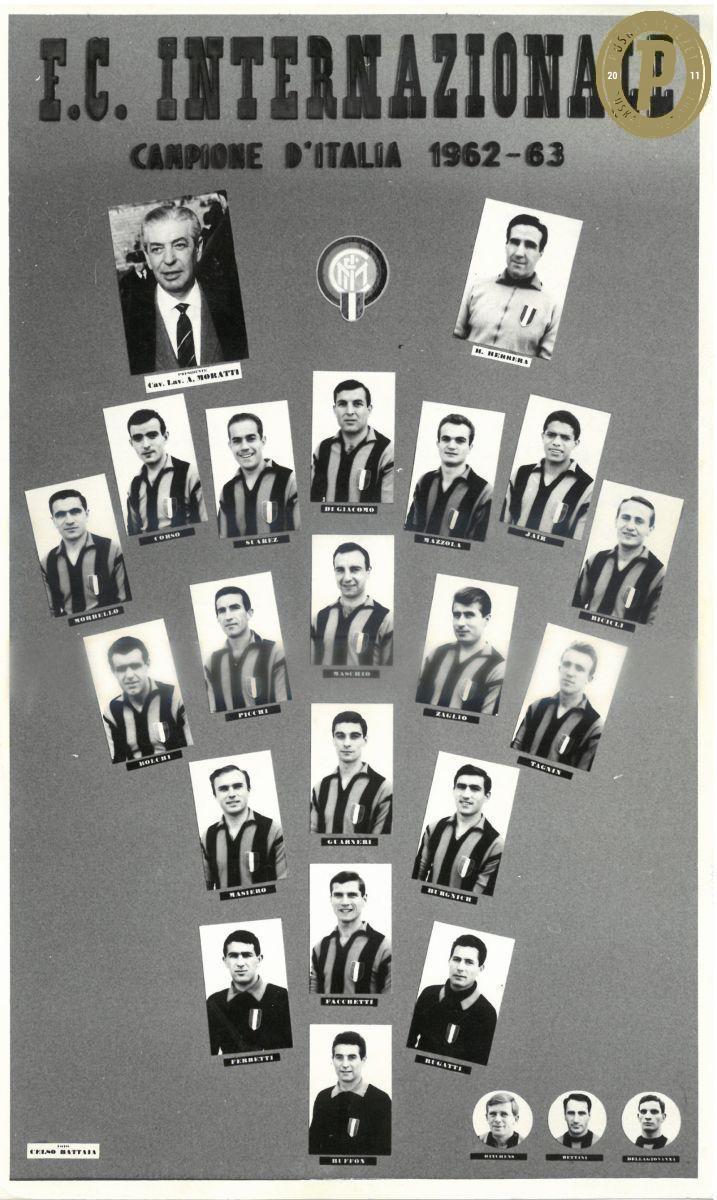 Az Inter 1962–1963-as olasz bajnok csapatának a tablója (fotók: Puskás Intézet/Gere-hagyaték)