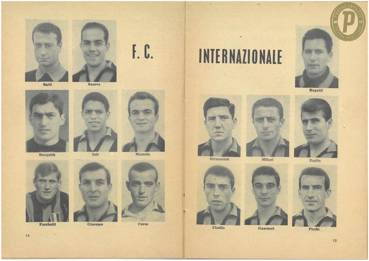 Az 1964. május 27-i BEK-döntő: Inter–Real Madrid (3–1) műsorfüzete, ez volt a háromszos BEK/BL-győztes olasz klub első kupasikere. A döntőt Puskás Ferenc 37 évesen játszotta végig (Fotók: Puskás Intézet/Puskás-hagyaték)