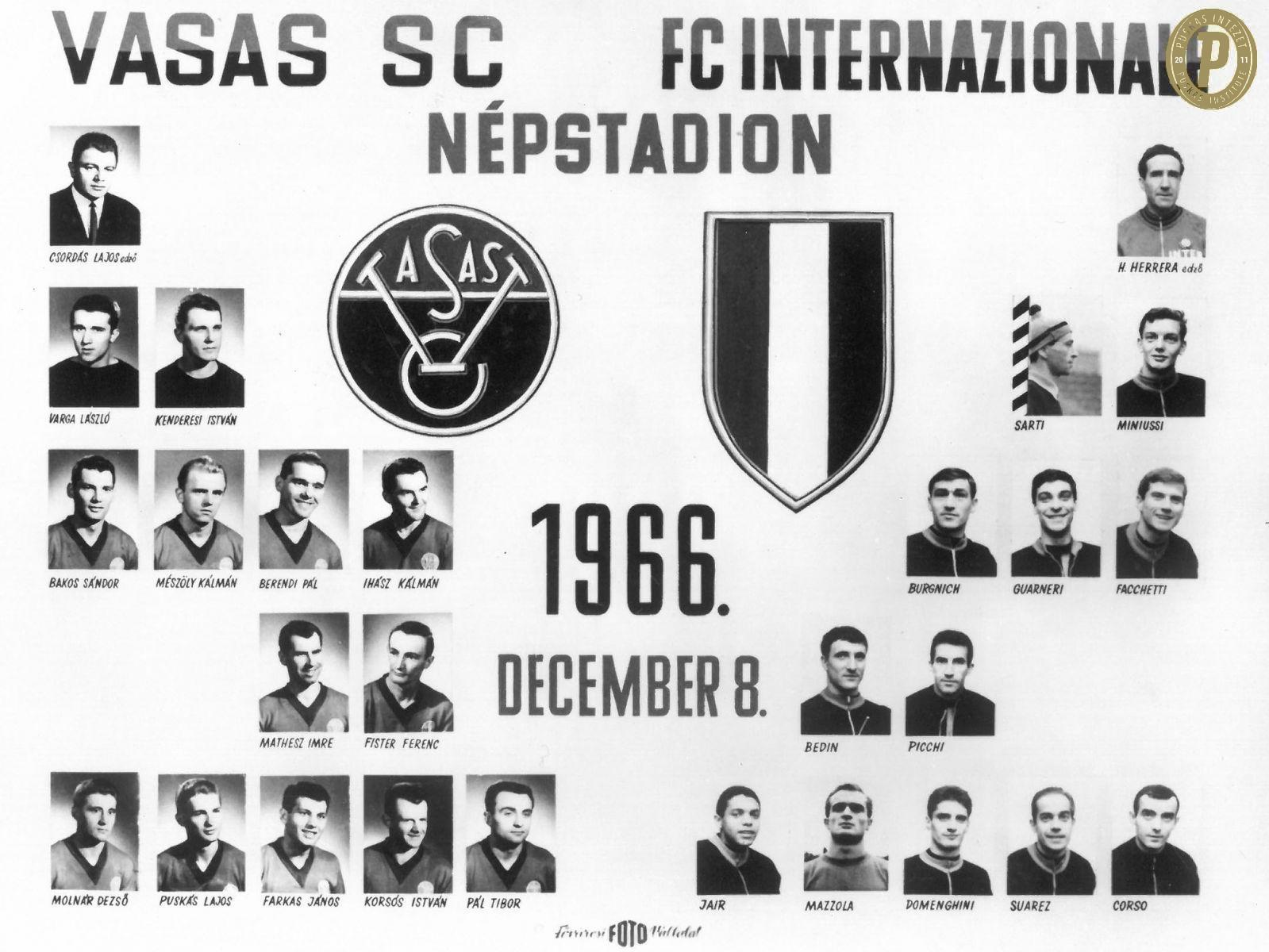 Az 1966. december 8-i BEK-nyolcaddöntő, 2. mérkőzés: Vasas SC–Inter (0–2) tablója (fotó: Puskás Intézet)