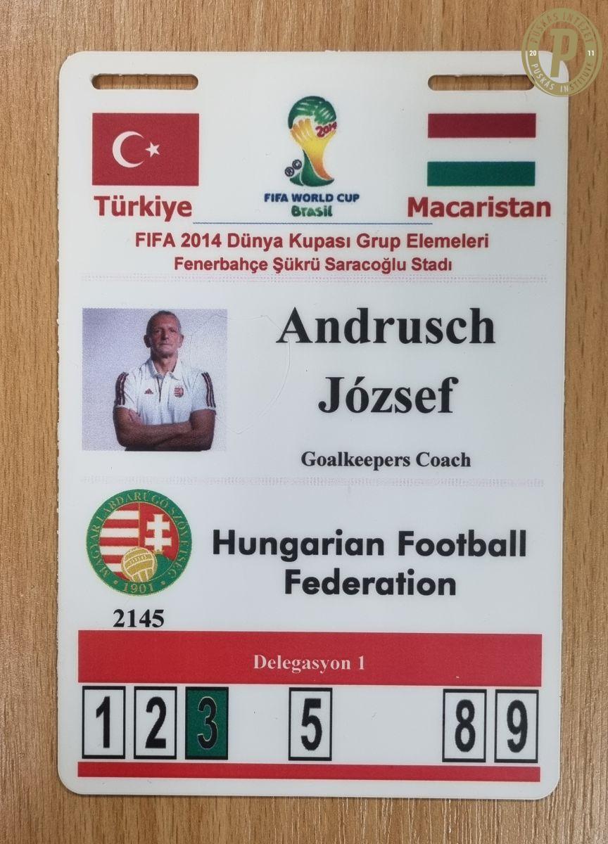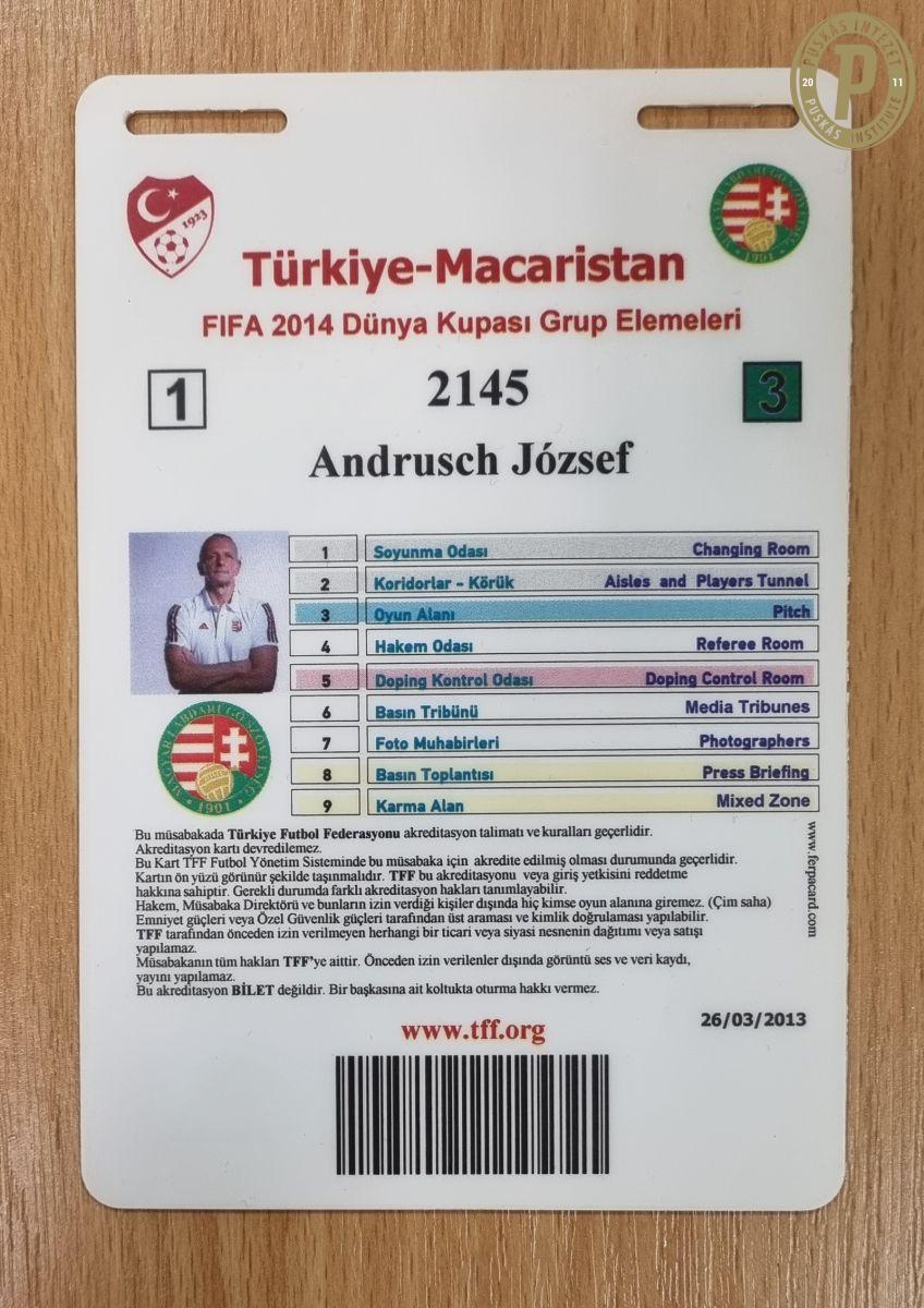 Andrusch József fényképes igazolványa a Törökország – Magyarországi világbajnoki selejtezőre. (Fotó: Puskás Intézet)