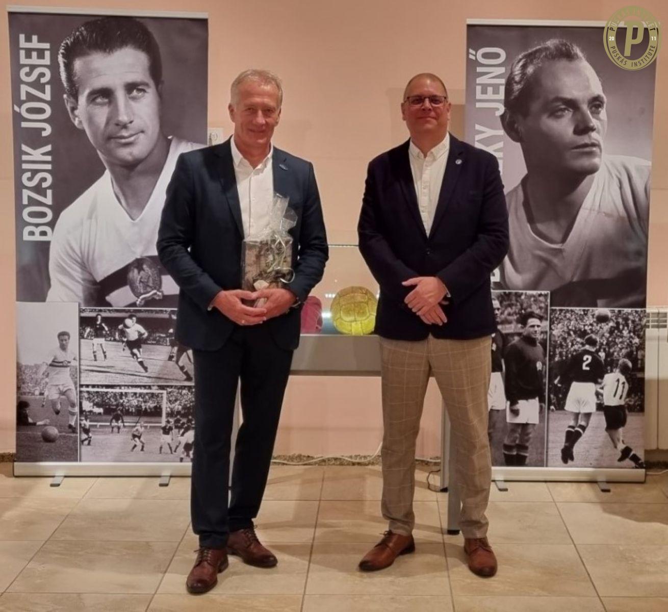 Bozsik Péter és Ifj. Buzánszky Jenő a Puskás Intézet nagyszalontai kiállításán (fotó: Puskás Intézet)