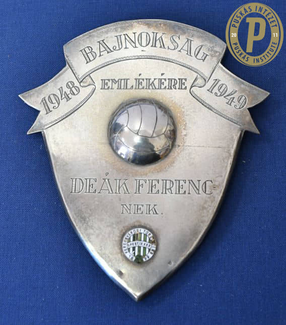 A bajnoki címért kapott ezüst emlékpajzsa (Deák-hagyaték/ Puskás Intézet)