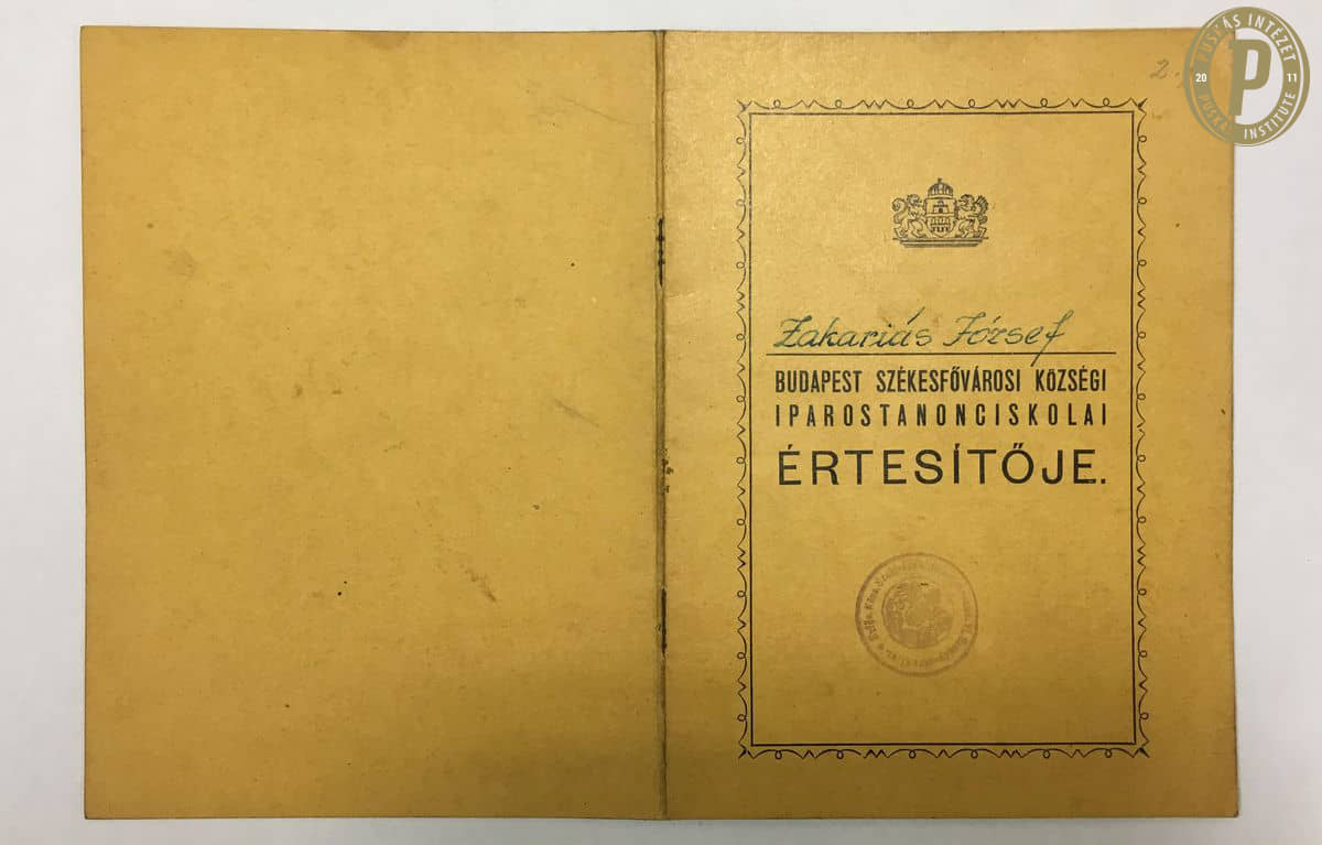 Zakariás József iparostanonciskolai értesítője (Zakariás-hagyaték/ Puskás Intézet)