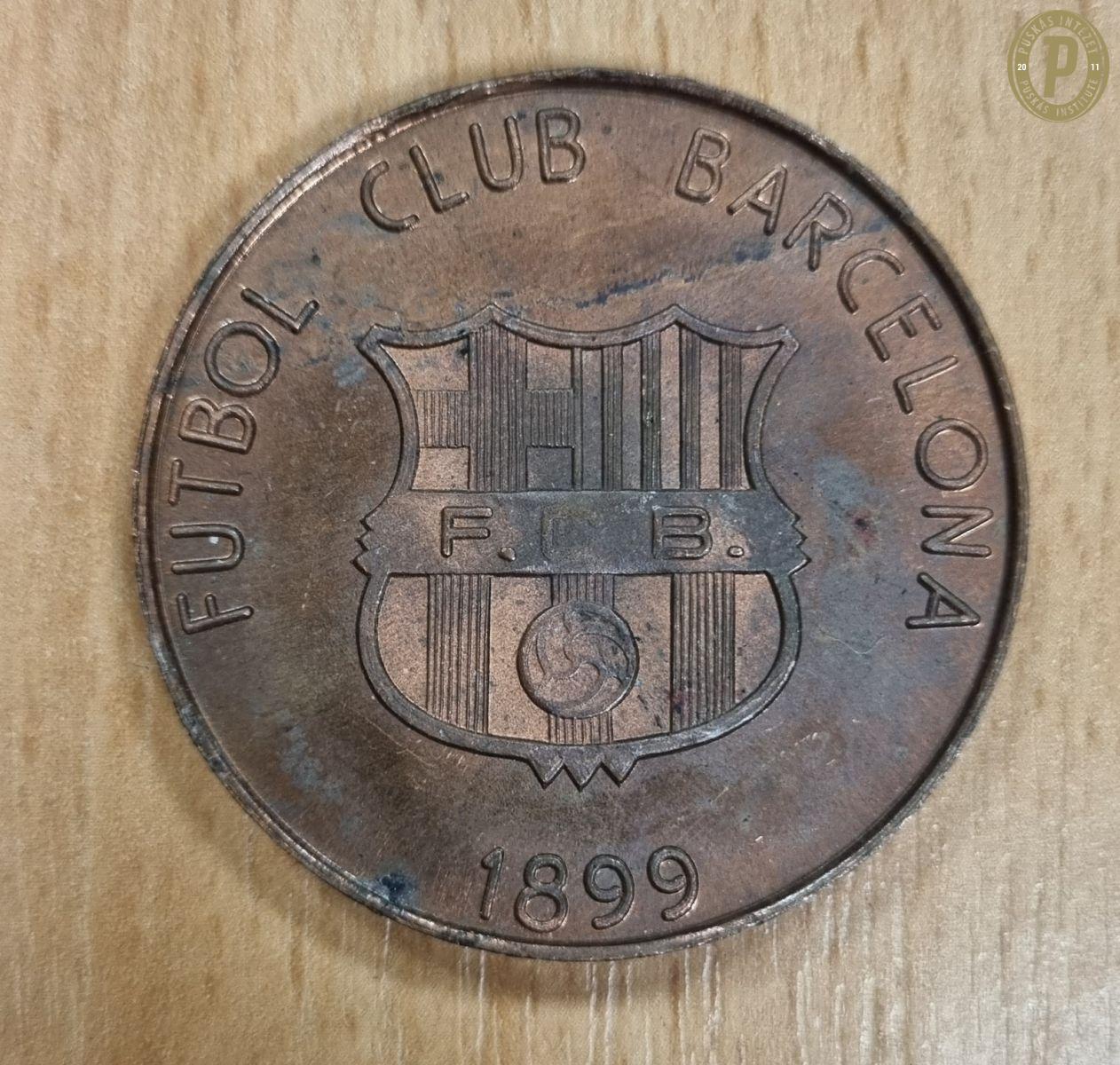 Kubala László barcelonai búcsúmérkőzésének emlékérme, amely nemrég került a Puskás Intézet birtokába. (Fotó: Puskás Intézet)