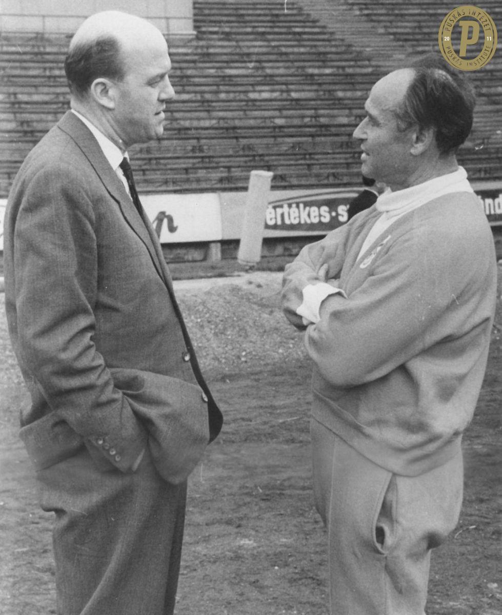 Csanádi Árpád és Schwartz Elek futballedző, aki Benfica vezetőedzőjént portugál bajnokságot nyert 1964–1965-ös szezonban (fotó: Puskás Intézet/Csanádi-hagyaték)