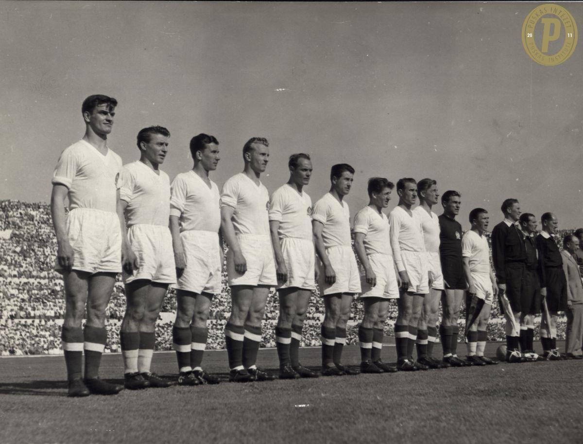 Aranycsapat tagjai az 1953-as olasz-magyar mérkőzésen. (Fotó: Puskás Intézet)